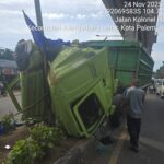 PALEMBANG|Dutaexpose.com – Akibat kurangnya konsentrasi, mobil Truk Tronton nopol H 8681 OF