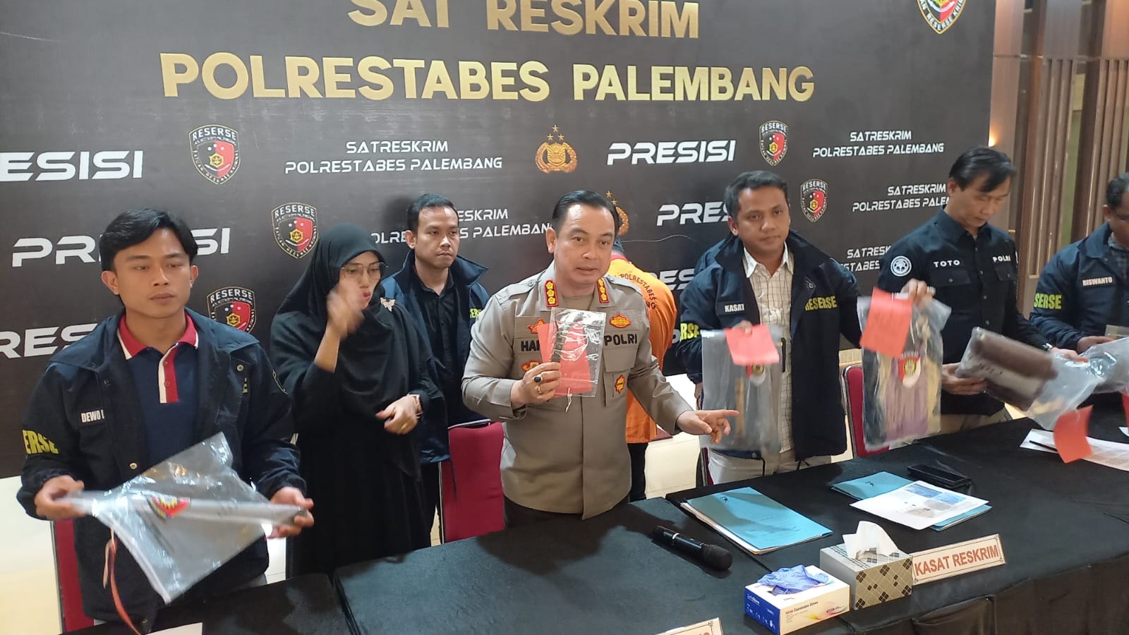 “Dari jejak sidik jari yang tertinggal kami analisa dengan CCTV, kami mendapati kesesuaian dengan ciri-ciri tersangka. Kemudian kami melakukan penyelidikan bekerjasama dengan Jatanras Ditreskrimum Polda Sumsel, untuk menangkap tersangka, hingga akhirnya tersangka berhasil kita tangkap di Kota Bandung,” ungkap Kombes Pol Harryo